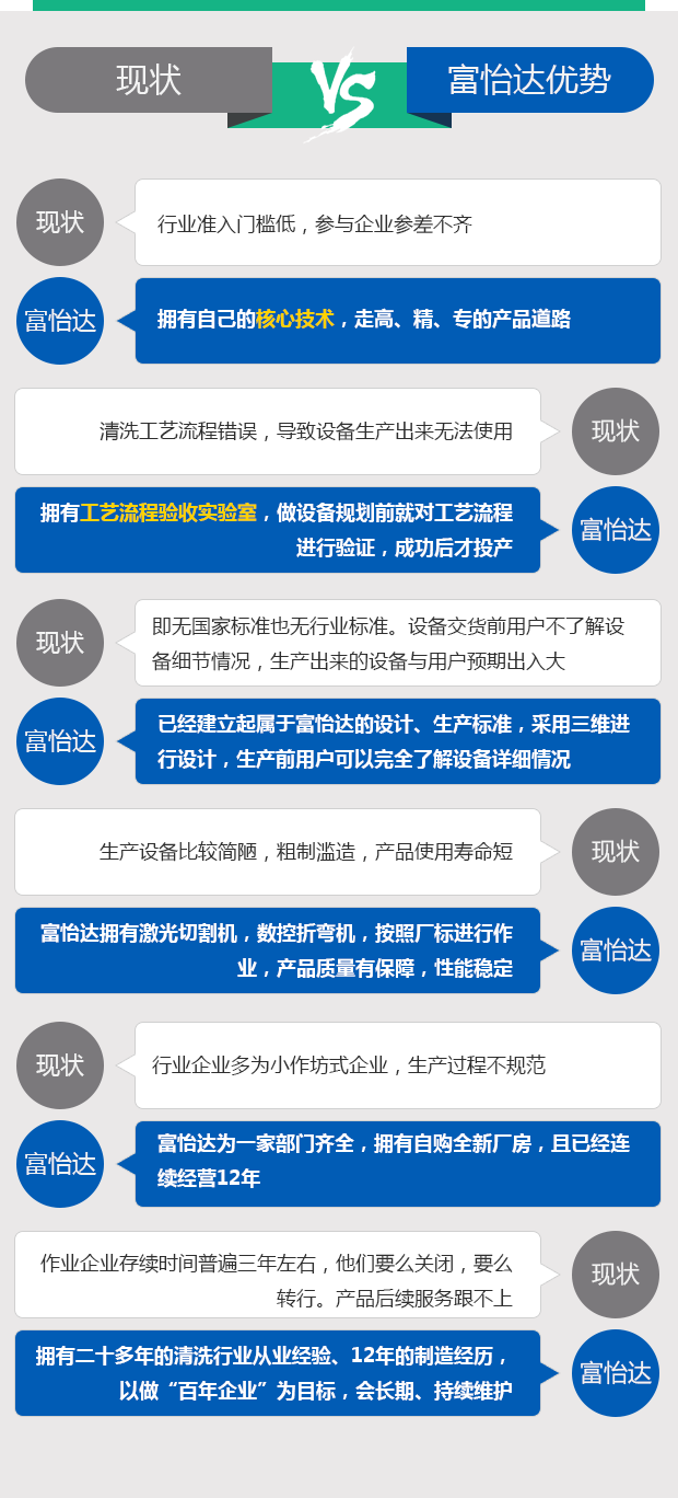 清洗行業(yè)均為行業(yè)專用設(shè)備,目前即無國家標(biāo)準(zhǔn),也沒有形成行業(yè)標(biāo)準(zhǔn),所以設(shè)備是各取所長,富一達(dá)的自動(dòng)超聲波清洗機(jī),通過式超聲波噴淋清洗機(jī)、往復(fù)式旋轉(zhuǎn)噴淋清洗機(jī),渦旋式清洗機(jī)均按富怡達(dá)廠標(biāo)標(biāo)準(zhǔn)進(jìn)行設(shè)計(jì)、制作。